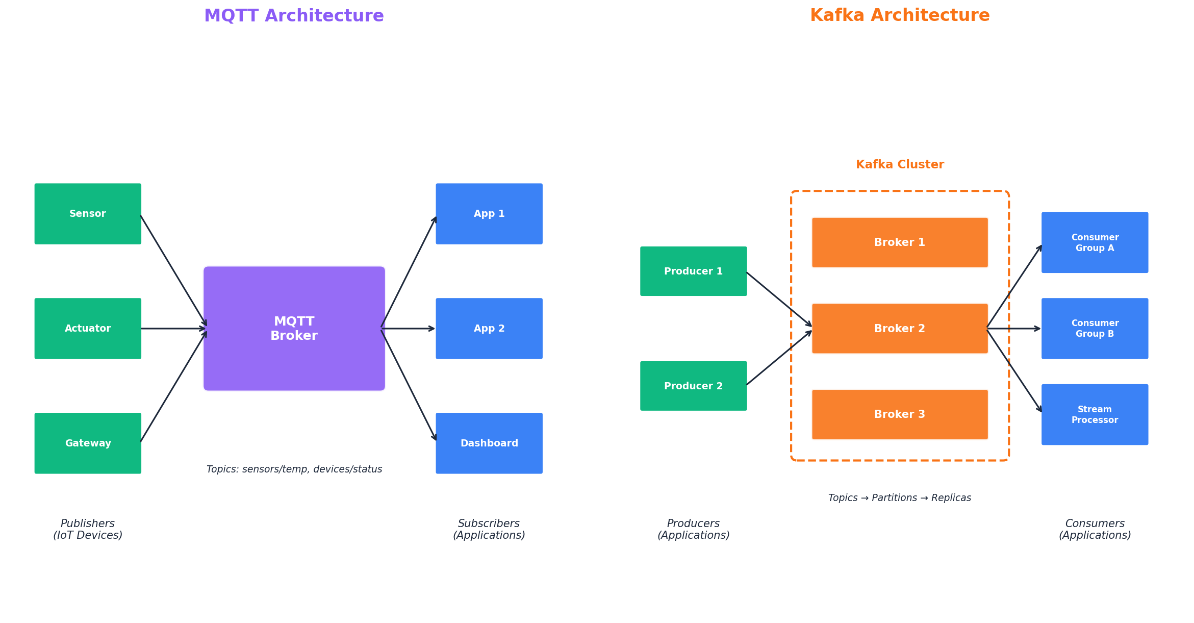 Understanding these distinctions allows you to select the right protocol for each part of your system. In many IoT and real-time data processing scenarios, combining both technologies provides the optimal solution for end-to-end data flow, from constrained devices at the edge to powerful analytics platforms in the cloud.